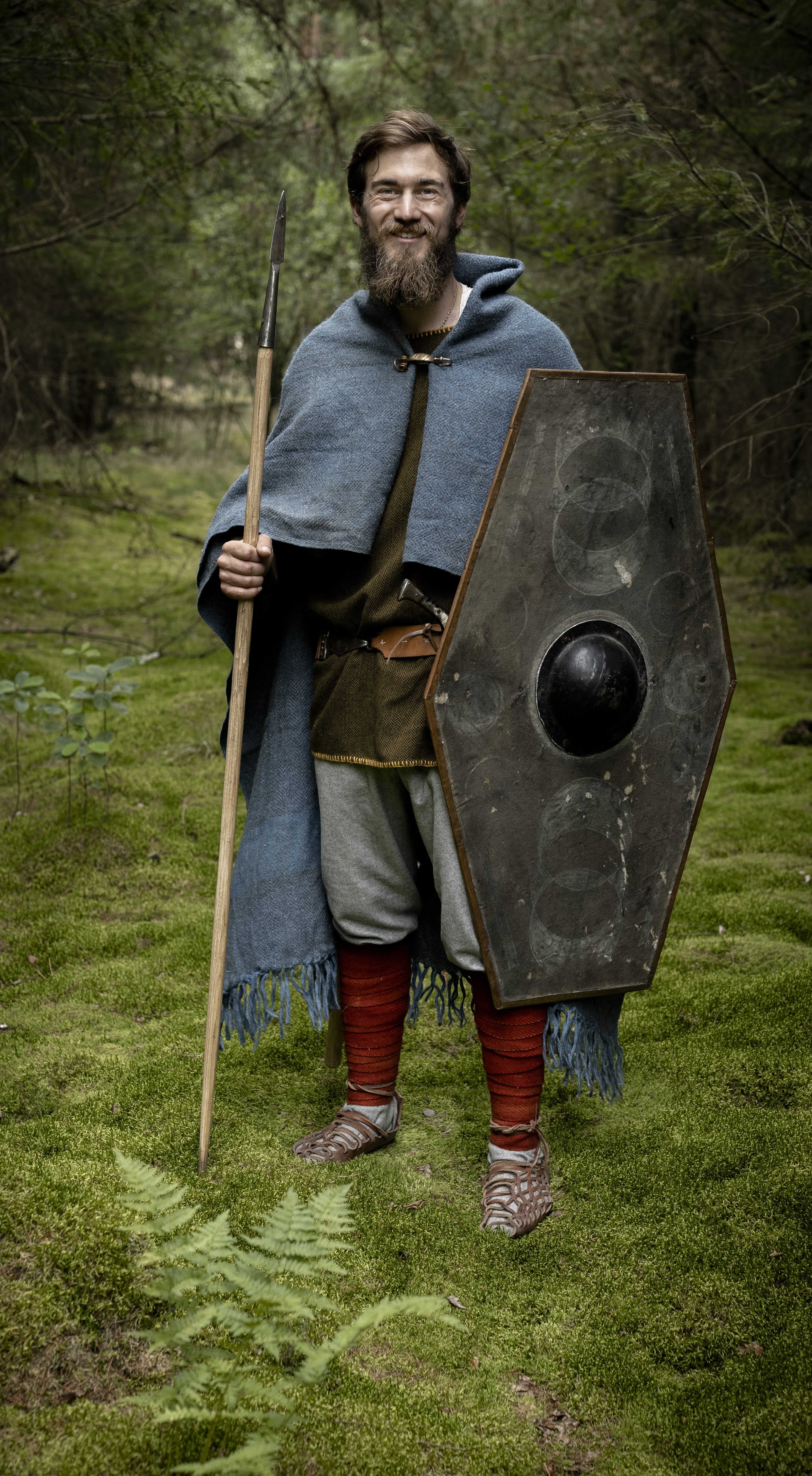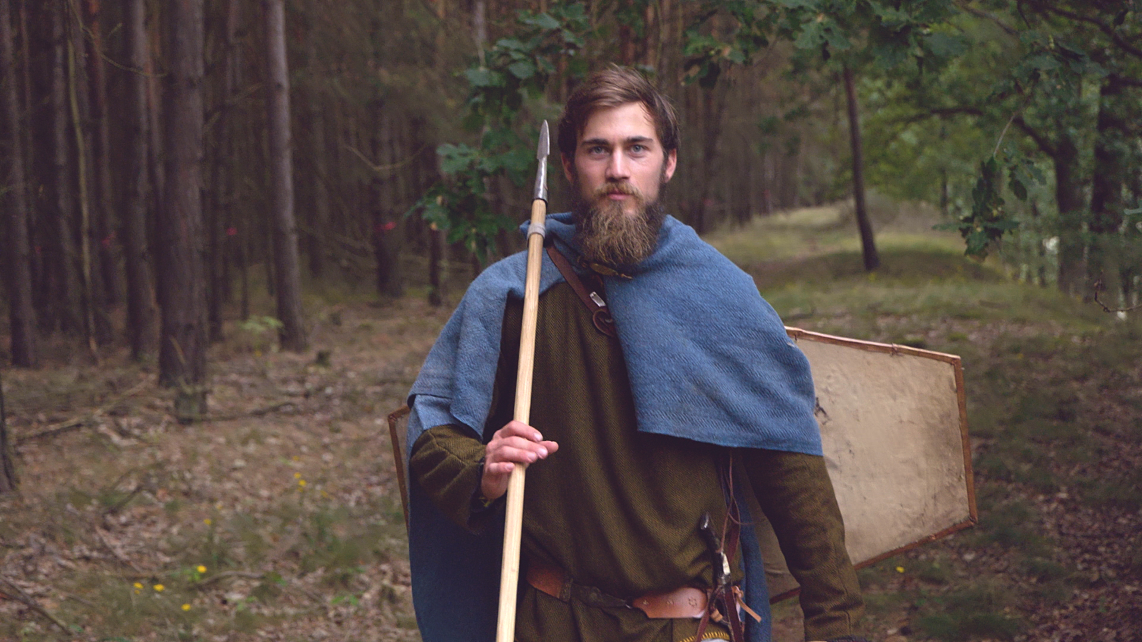 Ich laufe allein. Mit Mantel, Speer, Schild und Schuhen, wie sie vor Jahrhunderten getragen wurden. Tag für Tag, Woche für Woche. Ich schlafe draußen. Ich dokumentiere jeden Schritt, jede Erschöpfung, jedes Erlebnis, jeden Gewinn.